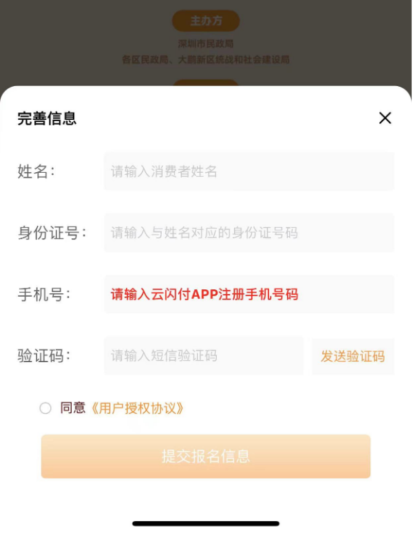 第一步:申请人先通过线上(“i深圳”)或线下的方式申请专项活动参与资格,获得区审定后(会收到短信通知),方可进入云闪付小程序申请。