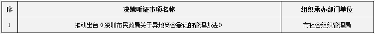 按照《市法治政府建设领导小组办公室关于印发深圳市落实重大行政决策程序要求指导意见》(深法治办〔2016〕13号)、《市法治政府建设领导小组办公室关于报送2019年市政府重大行政决策事项及听证事项的通知》(深法治办〔2019〕4号)的要求,现将我局2019年重大行政决策事项和重大行政决策听证事项目录公布如下: